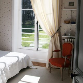 RESERVATION & TARIFSCette chambre d'hôtes à la décoration chatoyante et fleurie, aux décors chaleureux peut accueillir deux personnes. La salle de bain particulière à cette chambre est à l'extérieur. Son exposition sud-ouest, lui permet d'observer le couché de soleil et le parc du Château.